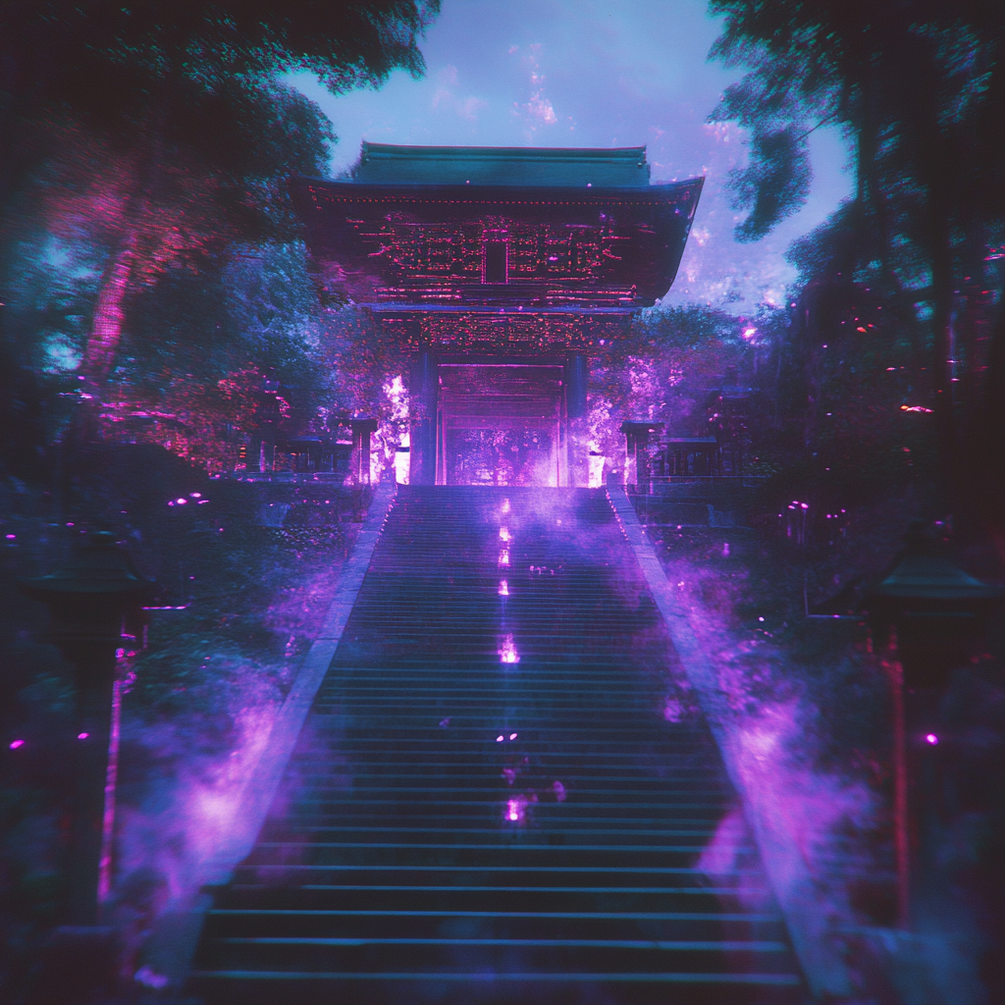 As you ascend back toward the temple's peak, the violet flames fade, leaving behind only the quiet hum of the mountain and the clarity within you. You stand at the summit, reborn, gazing out at the vast horizon with a profound sense of peace and purpose.
